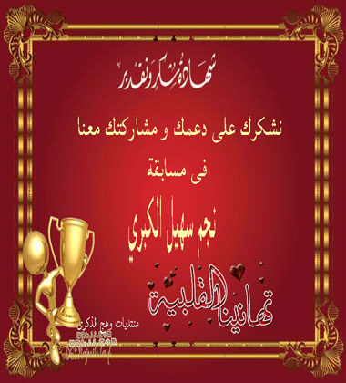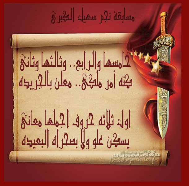 ، ، اخواني واخواتي واهل بيتي الثاني آل وهج الذكرى .. السلام عليكم ورحمة الله وبركاته.. هذا حل اللغز او السؤال الاول لمسابقة: ( نجم سهيل الكبرى«من هو العضو/ه» ).. ركزووو معااااي.. يقول نجـ سهيل ـم : ![]() طبعا حل اللغز او العضو هو او هي اختي الغاليه ريماس.. يعني خامس حرف ورابع حرف والثالث والثاني من معرفها .. س + ا + م + ي = سامي كأنه امر ملكي مُعلن بالجريده.. او الأمر السامي او مرسوم سامي.. والثلاثه الحروف الاولى اجملها معاني من أجمل الاسماء هو ر + ي + م = ريم والريم تسكن وتكثر بالجبال العاليه او الصحاري البعيده.. وانتهى حل اللغز.. الإجابة الصحيحه هي لابن بلد المليون شهيد.. واخي العزيز مهدي [img3] http://[/img3]وبالتالي هو الفائز الاول في مسابقة نجم سهيل الكبرى.. فالف مبروووووك لك أخي مهدي.. حصلت على: [img3] http://[/img3]وسام مسابقة نجم سهيل الكبرى فئة 1000 مشاركه.. زايد 500 مشاركه ستضاف اليه ان شاء الله.. لم تكن أجابه اخي مهدي الاجابه الصحيحه الوحيده.. هناك اجابه نموذجيه صحيحه .. في الحقيقة اعجبتني لكونها مفصله.. ولكن صاحبها اجاب قبلها اجابه خاطئه.. وكنت قد اعلنت اني ساستبعدها .. هي اجابة اخي احمد الحلوووو واتت اجابته حلوه مثله هههه بعد نقاش مطول مع شريكتي في المسابقه واختي الغاليه نجمه ليل وبعد ان اقنعتني .. واننا لم نعلن عن شروط المسابقه اصلا فنتحمل النتجيه ونقول ان اخي احمد الحلو هو الفائز الثاني.. ويحصل على: ![]() وسام مسابقة نجم سهيل الكبرى فئة 700 مشاركه زايد 300 مشاركه تضاف اليها ان شاء الله.. الف مبروووووك اخي احمد الحلو.. ويحصل جميع من شارك معنا ودعم المسابقة على شهادة شكرا.. ![]() وشكرا جزيلا للادارة الموقره.. على موافقتهم على المسابقه.. وشكر خاص لاخي شمس الاصيل.. واختي ريماس واخي انسان وملاك.. وشكرا جزيلا لجميع من شارك .. ونلتقي وبالتوفيق في السوال التالي.. مع تحيات نجـ سهيل ـم & نجمه ليل |
