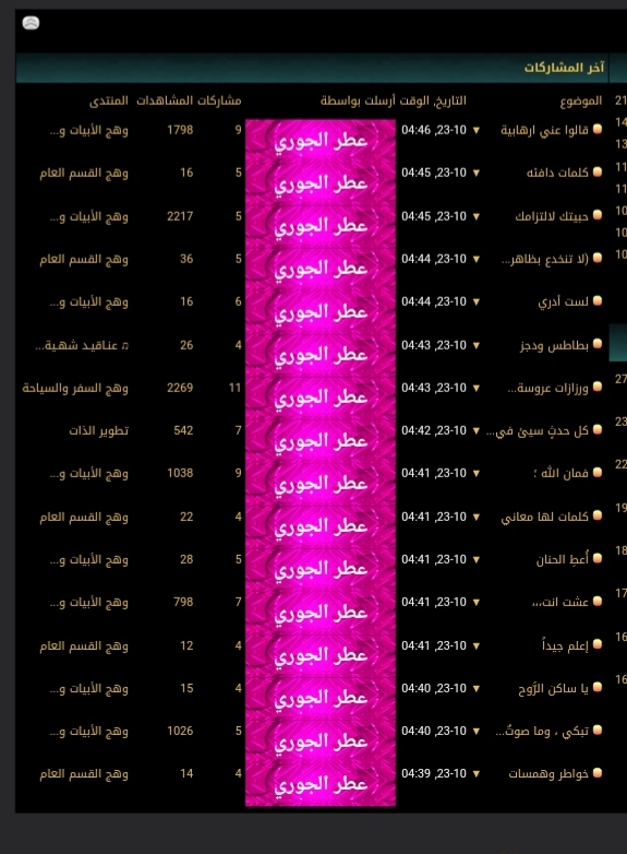 وهج المسابقات والفعاليات يمنع اضافة مسابقة الا بالعودة للادارة والتنظيم معها .. تحتسب المشاركات في هذا القسم..